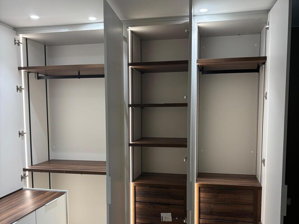 Sistema de armarios a medida con iluminación LED integrada y organización premium.